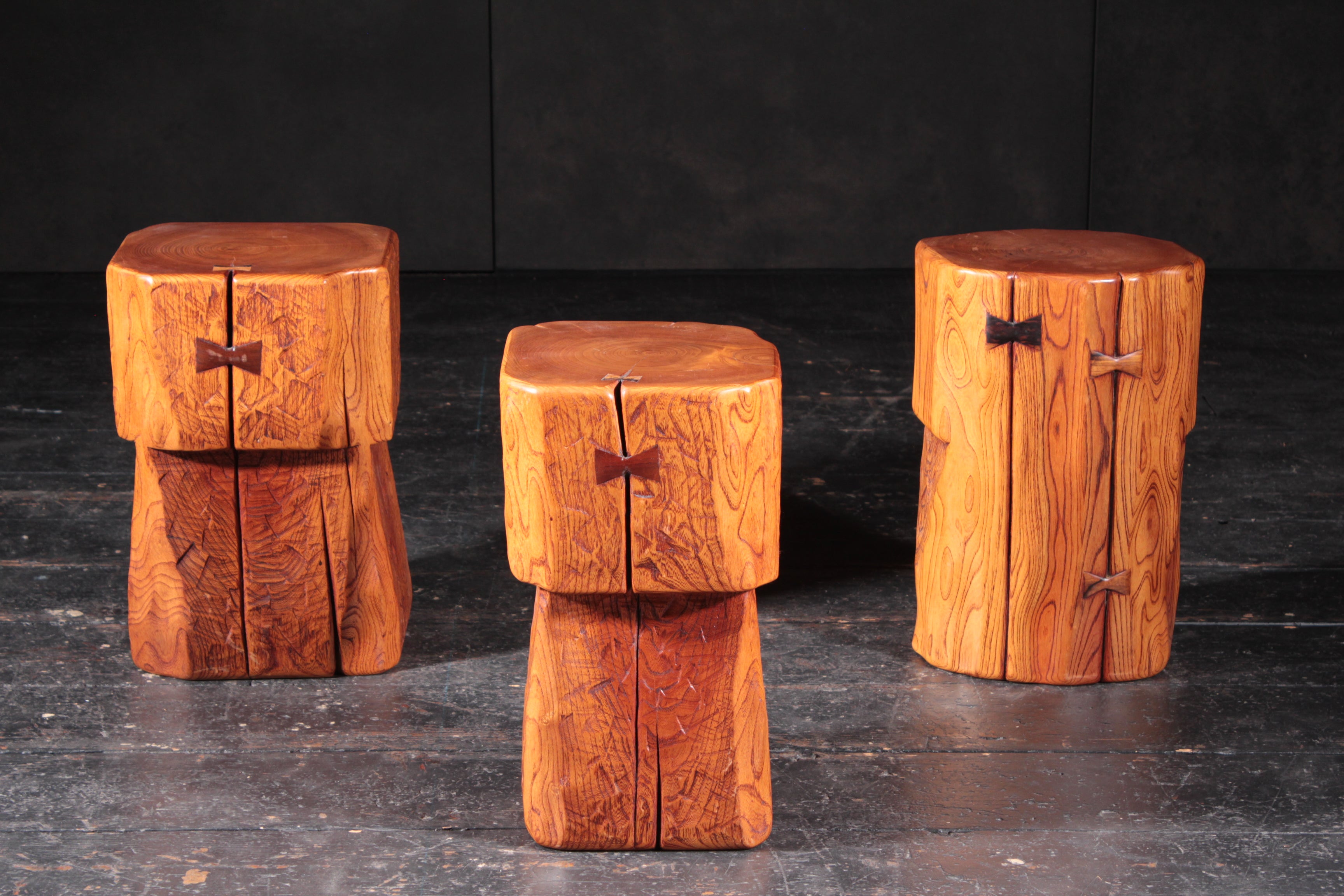 硬く重厚なけやきの丸太でつくられたスツール。
