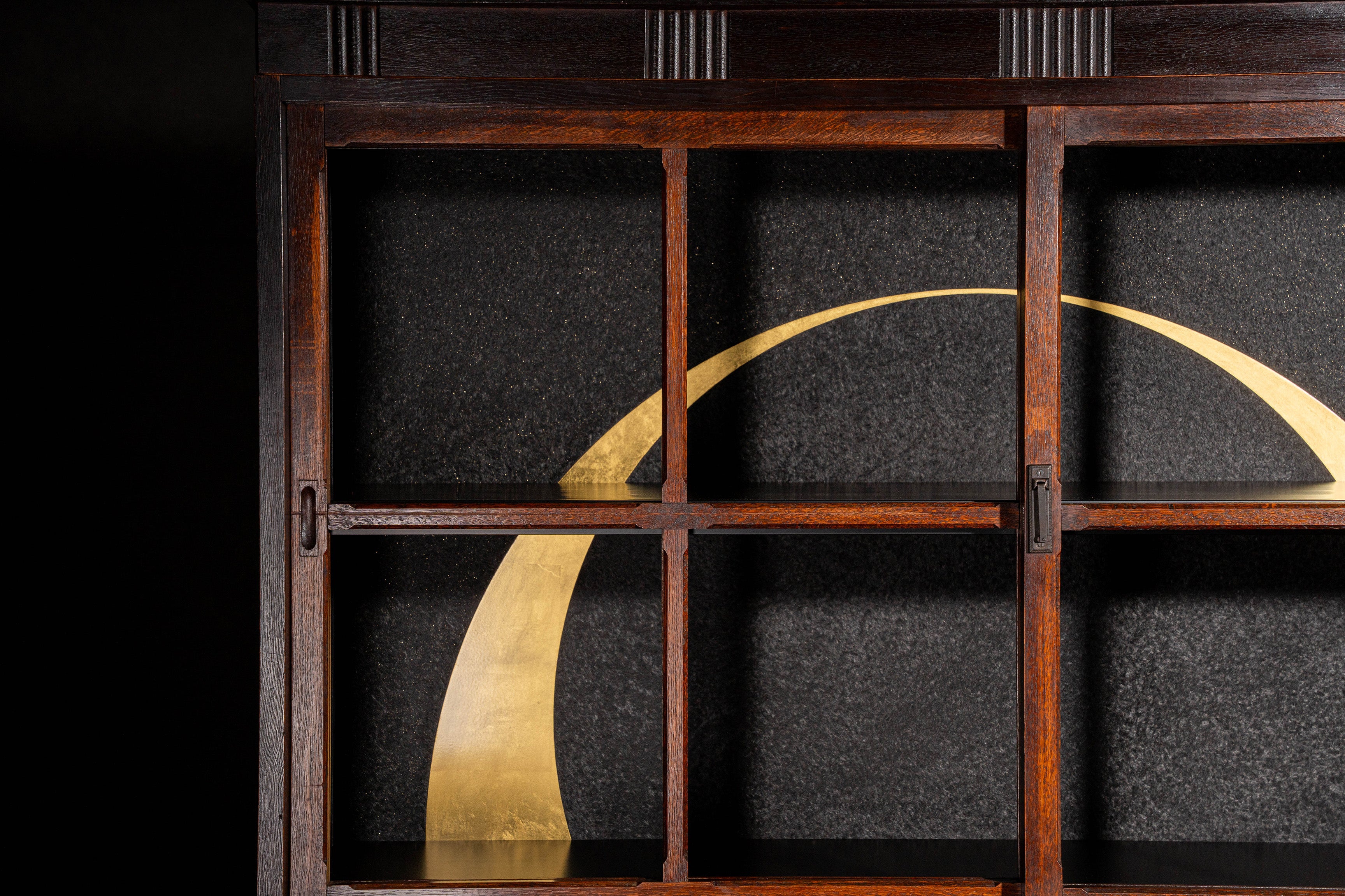 棚の背面に浮かび上がる月輪は、繊細な金箔を丁寧に貼り込んだ手仕事。