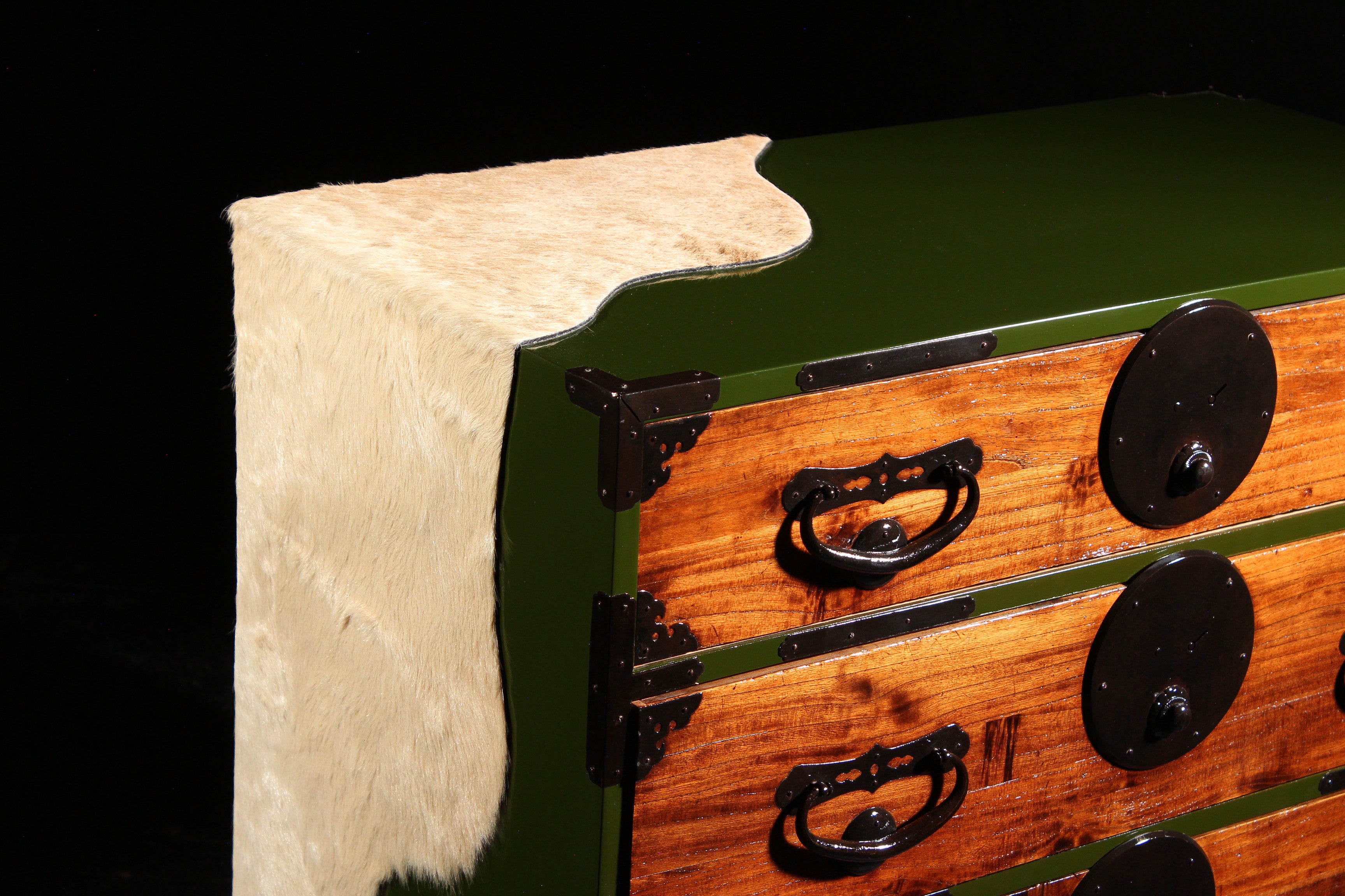 質感の異なる素材を組み合わせ、独創性に富んだ存在感抜群の箪笥に仕上がりました。